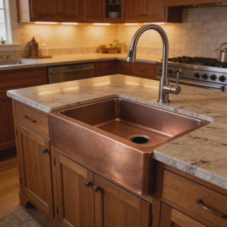 Copper Sink Hammered Front Apron 24.50 x 18.50 x 7 inch
