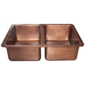 Double Bowl Single Wall Copper Kitchen Sink Hammered Antique Finish (without front apron)
